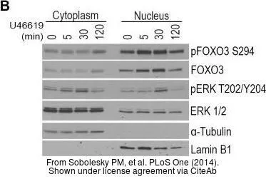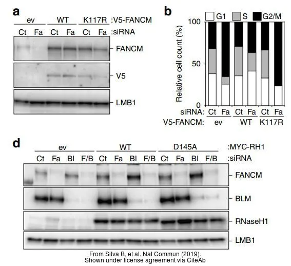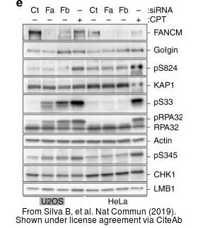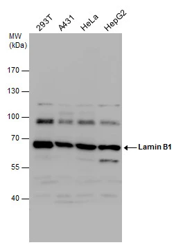 Various whole cell extracts (30 μg) were separated by 7.5% SDS-PAGE, and the membrane was blotted with Lamin B1 antibody (GTX103292) diluted at 1:1000. The HRP-conjugated anti-rabbit IgG antibody (GTX213110-01) was used to detect the primary antibody. Corresponding RNA expression data for the same cell lines are based on Human Protein Atlas program.